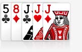 Full House (Three of Kind + One Pair ) Adalah kartu dengan gabungan dari Three of Kind + One Pair. Contohnya K K K + 10 10